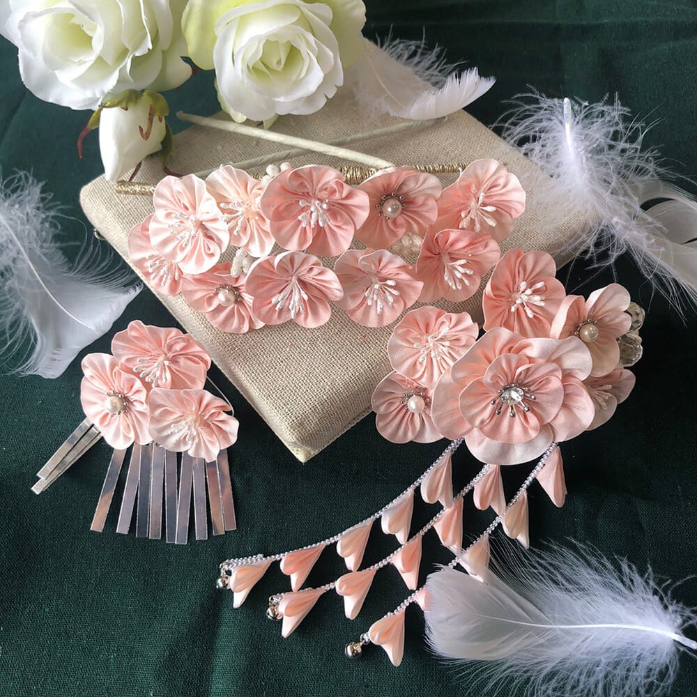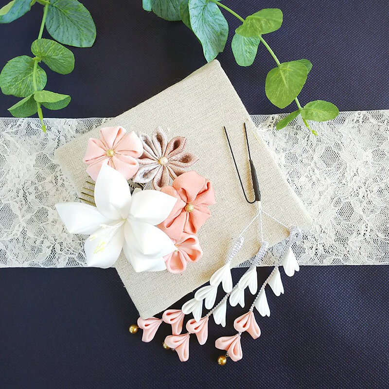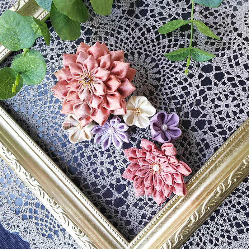 つまみ細工は、折り紙を三角に折ることができれば、誰でも作れる簡単なものです。針も糸も使わない、その昔、江戸時代から伝わる日本の伝統工芸です。